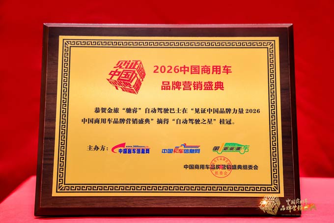 智领未来!金旅“驰睿”斩获“自动驾驶之星”大奖 4月9日,“见证品牌力量——2026中国商用车品牌营销盛典”在北京隆重举办。活动由中国客车信息网、中国卡车信息网、第1新能源车网联合举办,聚焦电动化、智能网联化行业发展趋势,深挖