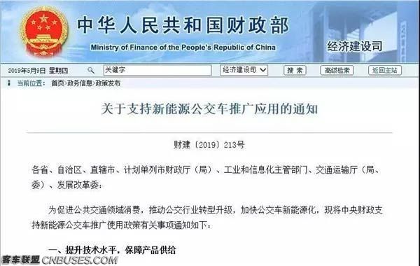 今年5月8日,财政部、工业和信息化部等四部门联合发布《关于支持新能源公交车推广应用的通知》,明确中央财政支持新能源公交车推广使用政策有关事项,以促进公共交通领域消费,推动公交行业转型升级,加快公交车新能源化。
