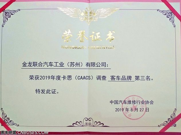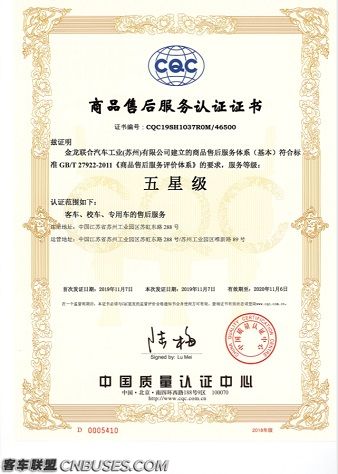 值得一提的是,2019年苏州金龙启动了售后服务评价认证项目,经过近一年的对标学习、自查自纠、改进完善、外审评价等工作流程,以96.7分的高分获得了中国质量认证中心(简称CQC)颁发的《商品售后服务评价体系》“五星级”证书,成为江苏省首家CQC认证的售后服务水平达到五星级标准的客车制造企业,也标志着海格客车在为客户需求提供整体解决方案基础上,通过实施服务转型升级,延展和提升了服务价值链,形成了竞争新优势,助力海格品牌再增值。
