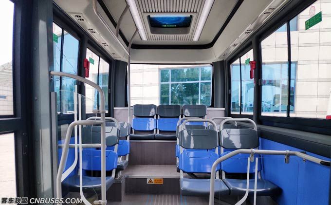 作为承担此次线路运营的睿通V60,是中通客车近两年推出的纯电动智慧客车新品。其拥有现代化高颜值造型,简约便捷的内饰,智能化的辅助系统,是当前国内定制化公交线路的“宠儿”。