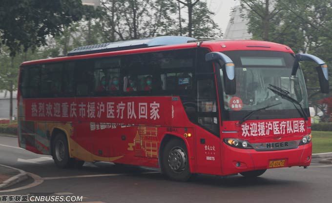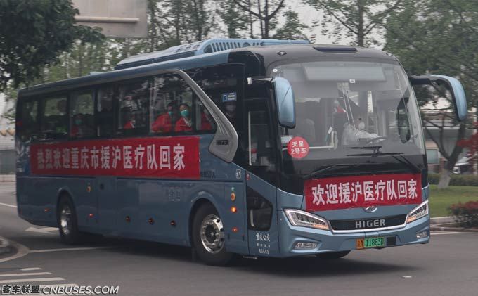 5月26日,在万众期待的目光中,重庆市援沪医疗队圆满完成支援上海的任务,顺利返航。重庆公交两江公司派出以海格旅行家豪华大巴、新能源公交为主的苏州金龙车队一路载着“逆行”勇士们平安回家,车身上用横幅书写“热烈欢迎重庆市援沪医疗队回家”等字样,引得重庆市民驻足迎接;5月29日,历时50余天奋战,天津滨海新区240名援沪医疗工作者圆满完成工作,乘坐班机返回天津,滨海新区疫情防控指挥部派专人接机,一袭红色的海格客车顺利将“白衣英雄”们接往隔离酒店,开展为期14天的集中隔离,“欢迎英雄凯旋”几个大字印在车前的横幅上,书写着对医护工作者们的致敬……自本轮上海疫情发生以来,各地道路客运企业牢记责任,将一名名医护工作者安全送返上海,全程参与的海格客车也不辱使命,以高效、平稳的运行助力这场没有硝烟的战役。