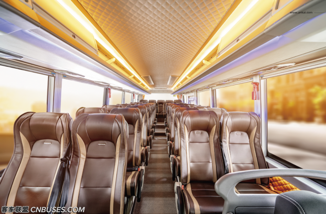该车颜值出众、高贵典雅,整车配备大曲面玻璃,内饰精选高档材料,搭载NVH静音技术,营造出豪华舒适之感,更应用了安凯独有的黄金动力链技术、自主ATS智能控制系统等“黑科技”,能够更加节能省油,为客户创造更大效益,也为乘客游山玩水提供舒适出行的最优解。