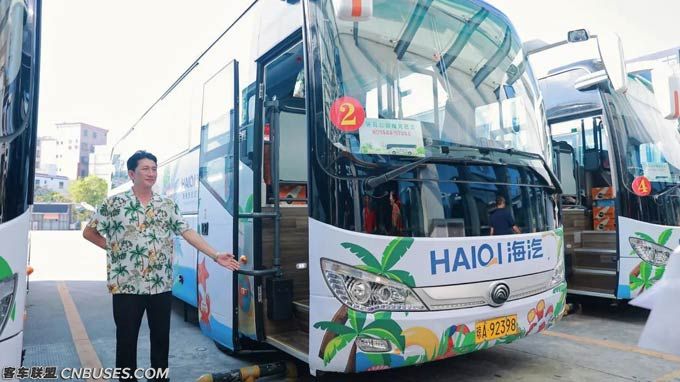 贵宾车队打造也让海南环岛旅游公路观光巴士一出发就是亮点,从车辆配置到各种细节处理,再到服务标准化打造,都是高标准呈现。“一方面是宇通高品质车辆赋能,另一方面是更贴心的服务保障。车辆不仅有多巴胺配色,搭配充满海南元素的装饰画,还有人性化的设计,车内设施齐全,座椅舒适宽敞,配有导游全程服务,备有饮品和特色小吃等,让游客在旅途中能够舒适地欣赏海南的美景。”陈立武面对媒体时提到。