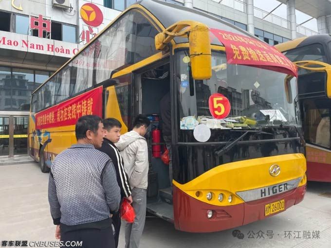 除环江、射洪外,多地也都为返岗返工人员安排了海格客车车队专门接送。苏州金龙提前组织,了解输送车行驶线路,并安排相关服务人员接续助力,确保了这些专车的安全运营。