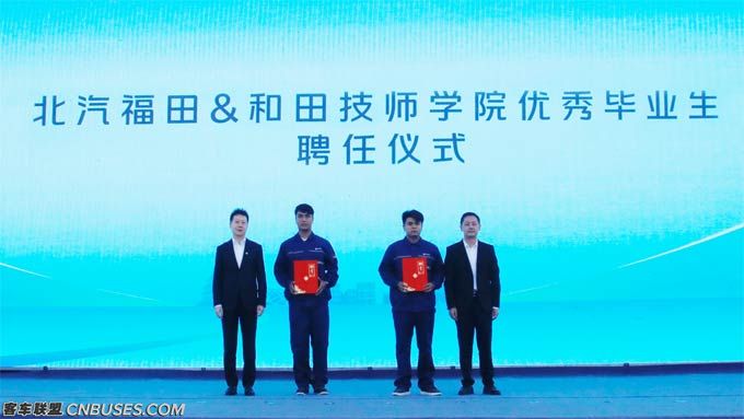 同时双方将携手探索校企合作新模式,通过共建实习实训基地、开设订单班、共同开发课程体系等方式,不仅可为学生提供更贴近产业实际的学习环境,也能为企业发展注入新鲜血液,实现双赢。活动现场,北汽福田聘用和田技师学院30名优秀毕业生成为北汽福田经销商员工,北汽福田副总经理、新闻发言人巩海东为2名优秀毕业代表生颁发聘书。