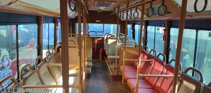 车内以复古的棕色为主设计色调,有一种古色古香的韵味;在广告牌上可以展示当地的旅游特色、美食文化、风土人情,让乘客乘坐一辆车爱上一座城。