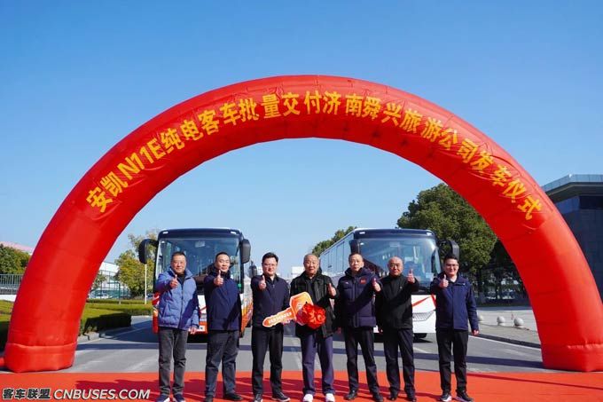 “海右此亭古,济南名士多。”济南,这座充满历史韵味与现代活力的城市,在交通出行领域即将迎来一次华丽升级。2月24日,一批安凯N11E纯电动客车正式交付济南舜兴旅游汽车有限公司,为当地企事业通勤班车领域注入全新活力,开启济南通勤的高效、舒适、绿色新征程。