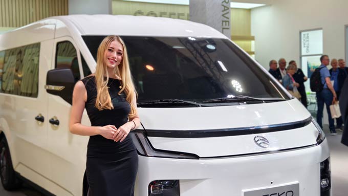 金旅客车的轻型车产品在海外一直有口皆碑,为满足最新的市场需求,金旅推出了全新的新能源轻型商用车——GECKO。此次参展的GECKO展车,整车尺寸5400×1979×2185mm,采用2+2+2+3的座椅布局,配备宁德时代83.67度电池,纯电续航里程在WLTP工况下可达460km,且具备L2+级智能辅助驾驶功能,集成8颗超声波雷达、4颗环视摄像头、DMS驾驶员监测等传感器,让驾驶更轻松更安全。