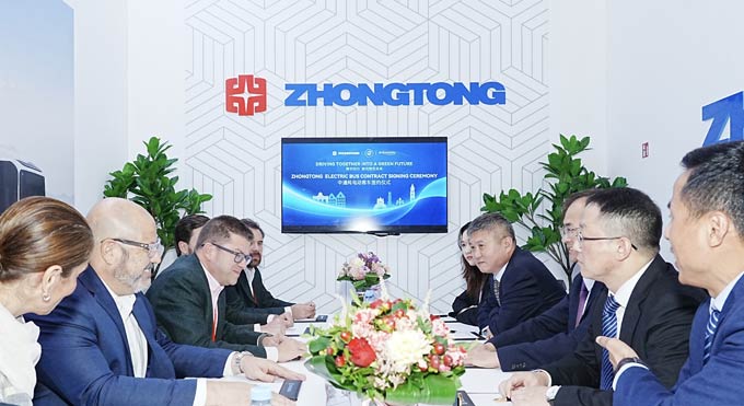 值得关注的是,本次展会,中通客车也受到了来自美洲客户的关注与信任。来自哥斯达黎加的客户现场签约140辆中通纯电动城市客车,涵盖N12、N10、N8等多种车型,满足当地多元化的公共交通出行需求。