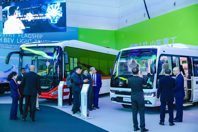其中,N12、L7E等三款车型作为技术标杆亮相山东重工全系列全领域新能源商用车展区,展现在新能源客车领域的前瞻布局,L7、H12Plus、H14Plus及双层旅团大巴等八款主推车型深度结合海外各大区本土化特性,实现技术成果向市场需求的精准转化。这不仅验证了中通客车技术路线的市场适配性,更充分展现了中通客车的全产业链优势。