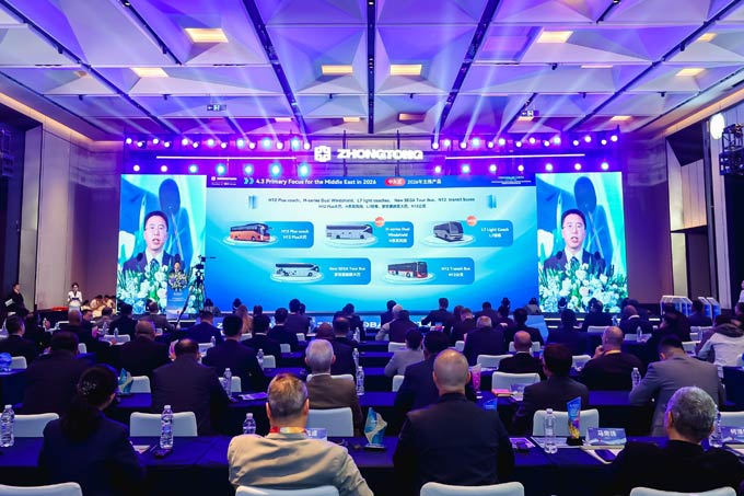 本次全球合作伙伴大会,中通客车为全球用户带来了2026海外全系产品解决方案。基于H系、N系、V系、L系、M系五大产品平台,以极致安全、极致节能、极致可靠、极致舒适、高度网联等技术优势,以及在创新研发、质量管控、绿色转型、智能化升级等方面的生态共建,中通客车为用户构建起了从产品研发到本地化服务的完整价值链。
