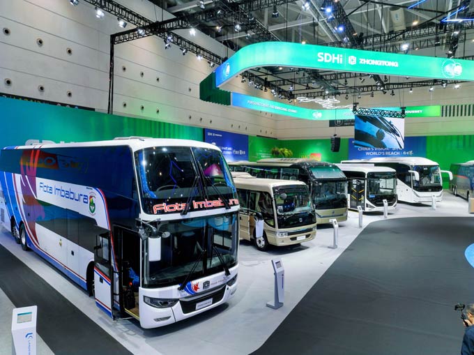 此次共展出11款展品,包含城市公交、旅游大巴、高端商务等产品系列,涵盖纯电动、燃油、天然气三种动力形式,全方位展示了中通客车为全球用户提供全场景解决方案的能力。