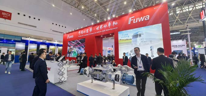 广东富华围绕商用车新能源和轻量化两大技术主题,展出的展品涵盖轻量化重卡前桥及驱动桥、轻量化半挂车车轴及空气悬挂系统、新能源重卡电驱桥、电动半挂车车轴、电动支腿等产品等,是现场唯一一家可以提供从卡车桥到半挂车车轴的“主挂一体”整车底盘系统解决方案的企业。
