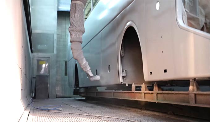 工艺层面更藏着满满的匠心,中通H系旅团客车采用先进的机器人自动喷涂技术,对车漆材料与施工流程进行全方位升级,让漆面亮度、耐久性与膜厚均匀度同步跃升至行业新高度,彻底打破大众对传统旅团客车的视觉认知。