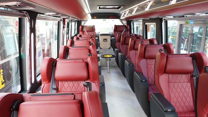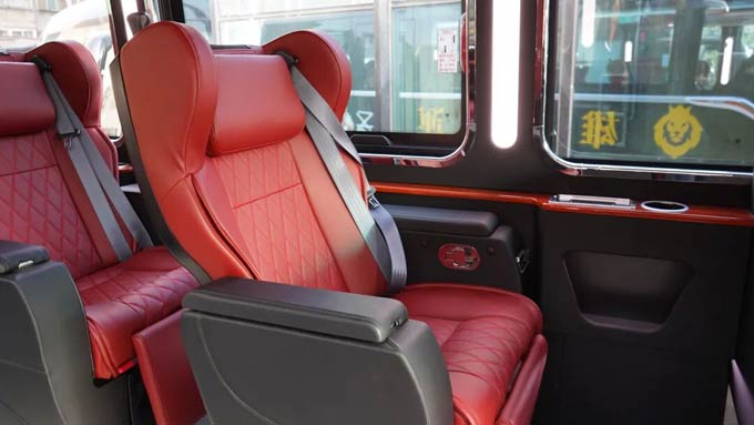 1+1 布局,重塑舒适标准:打破传统 2+2 座椅局限,针对西北长途丝路行程,车内采用15座1+1专属头等舱布局。超大间距、私密空间,搭配人体工学豪华商务座椅,每一位乘客都能真正躺卧休息。平地板设计让老人、儿童上下车更安全,行走更从容。前后排毫无拥挤感,长途不再是煎熬,而是享受。